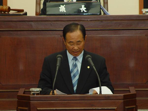 제92회 정례회 제2차 본회의시 변우정 산업건설위원장이 상임위원회에서 활동한 결과를 보고하고 있다.