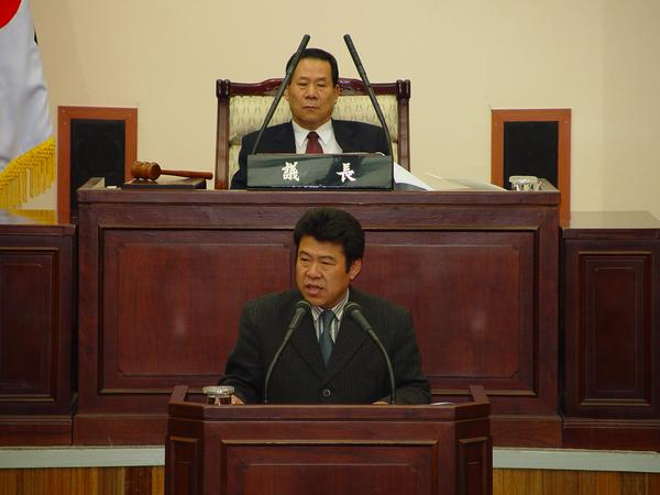 제92회 정례회 제2차 본회의시 변우정 산업건설위원장이 상임위원회에서 활동한 결과를 보고하고 있다.